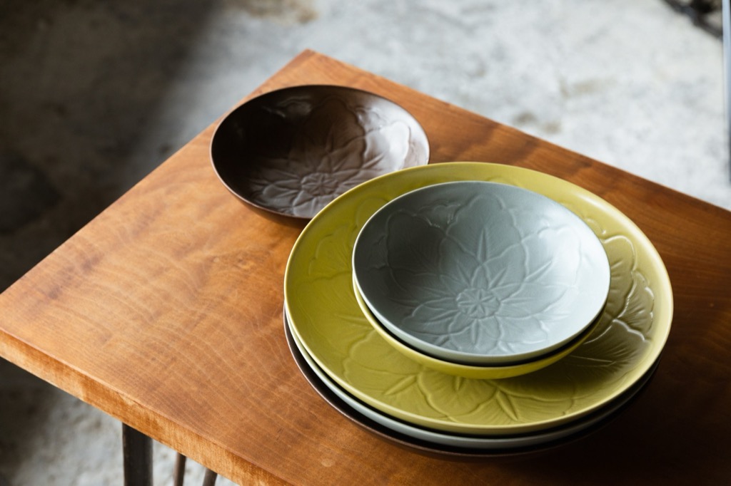 JICON uses its unique blends of porcelain stones and glazes. Traditionally in Arita, only pure white porcelain stones have been treasured as materials as they produce porcelain wares without any traces of pigments on the surface. These materials actually provide good workability for craftsmen. However, the local resources have been almost depleted due to the discarding of porcelain stones with pigments or colored tones. In Arita, you can witness mining hills where abandoned porcelain stones with brownish contents are exposed to the air, as pure white ones are no longer available.
