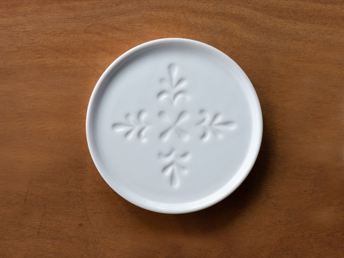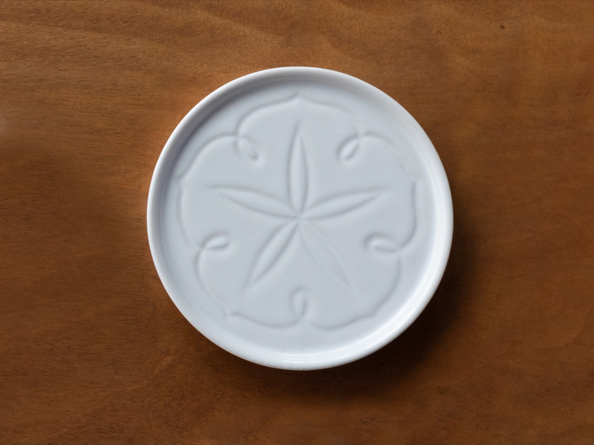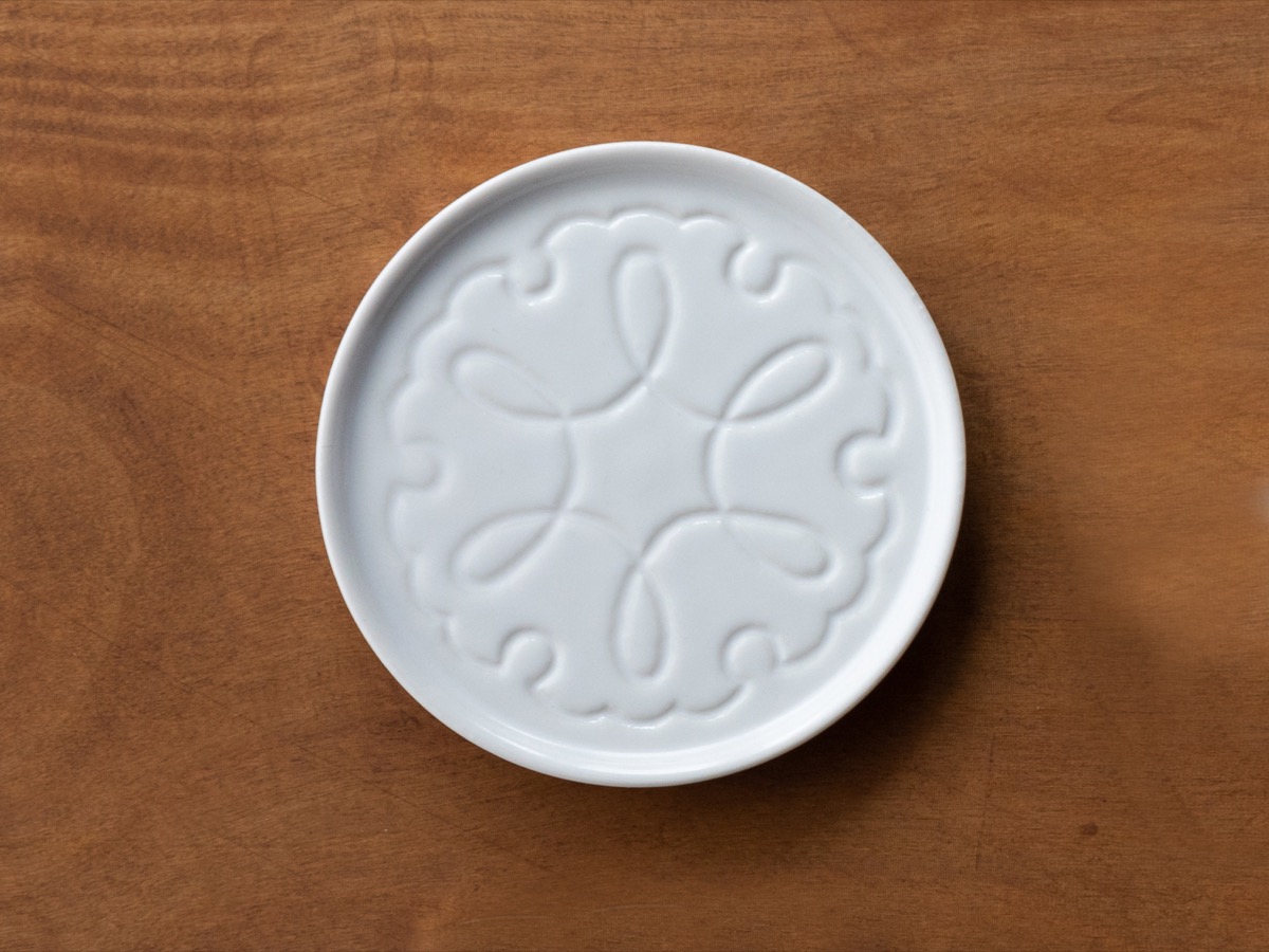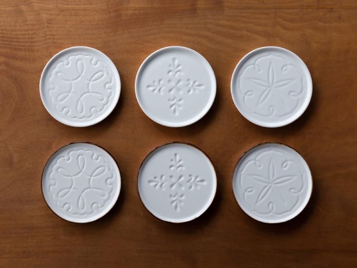 Introducing beautifully-carved, white-porcelain coasters designed by OJI Masanori.