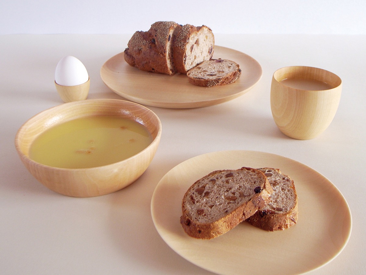 "Cara" is a series of egg-shaped tableware making the most of the warmth of wood as a material and thin-wood-curving techniques.