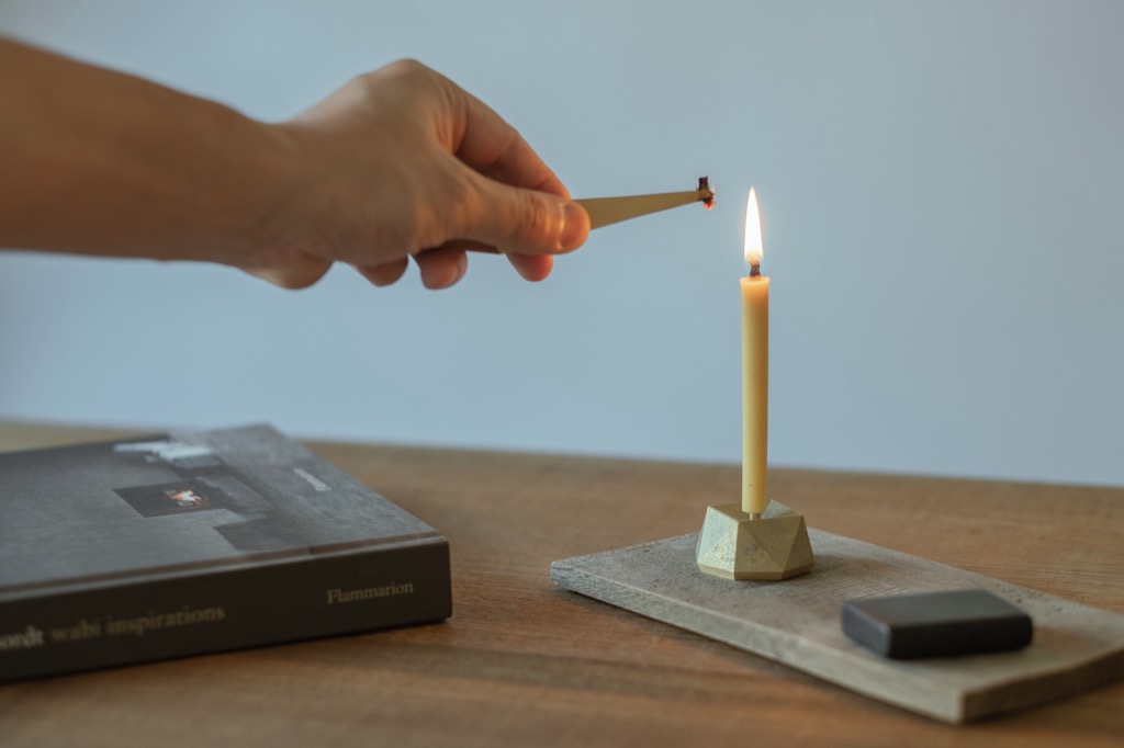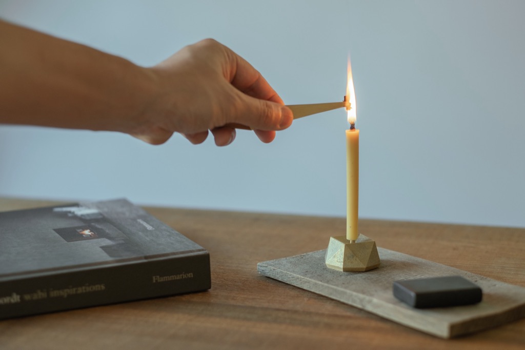 The wick of a Japanese candle is thick, so it gradually turns into charcoal as it burns. By trimming the long wick that remains, you can maintain both its brightness and a beautiful flame.