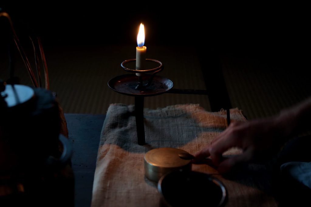(DAIYO Sumac Wax Candle in use at tea ceremony)