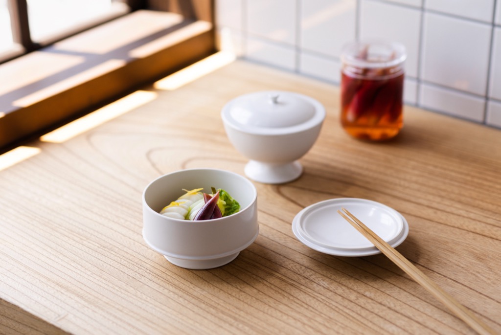 Designed by OJI Masanori, this is a series of gorgeous food containers with a foot and a lid that can be taken straight from your refrigerator to the dining table.
