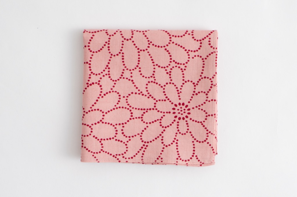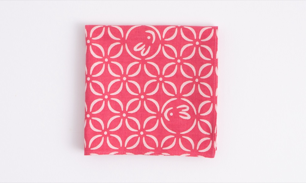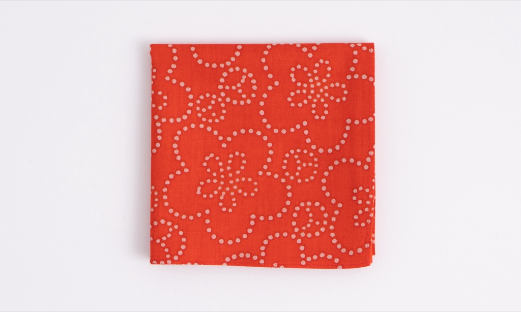 The size is 50 x 50 cm (approx. 20 x 20 in.). The edges are hemmed, unlike the TENUGUI, which is traditionally unfinished.