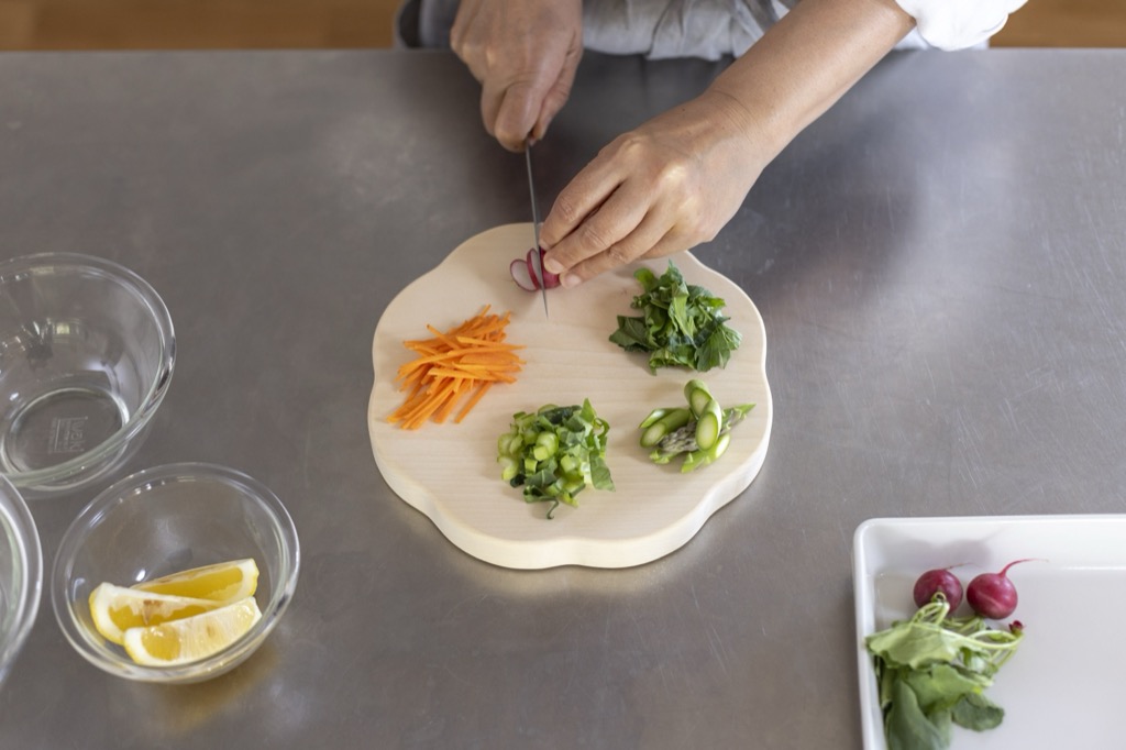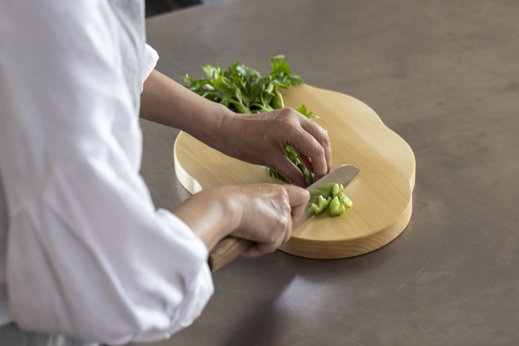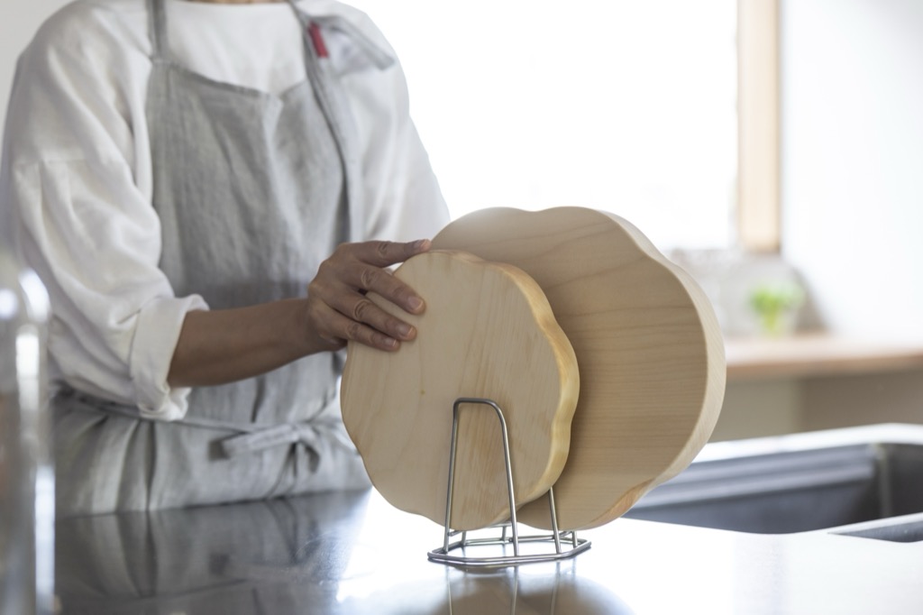 Two new designs of our classic "Ginkgo MANAITAs" inspired by the charming motifs of "clouds" and "flowers," have just debuted. These MANAITAs are designed to stand upright, minimizing the surface area in contact with the counter. This design allows them to dry quickly after washing, keeping them clean and hygienic.
