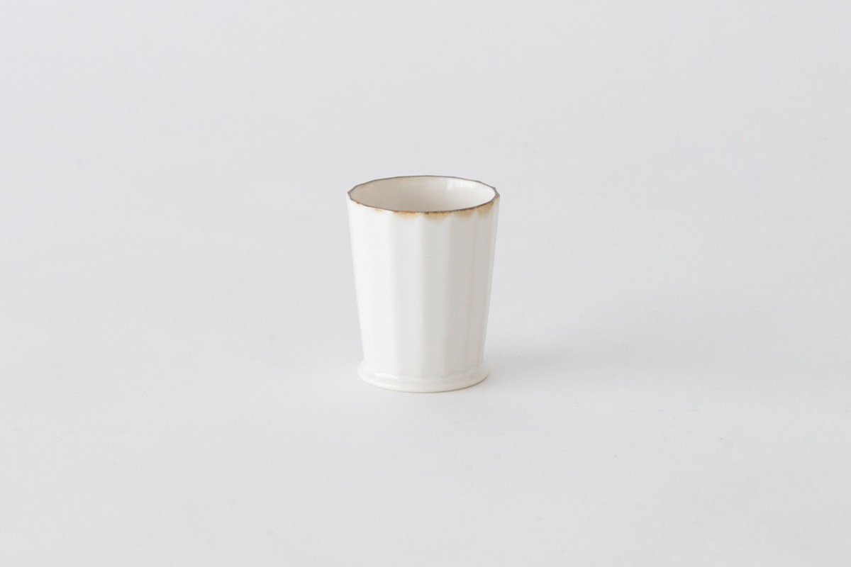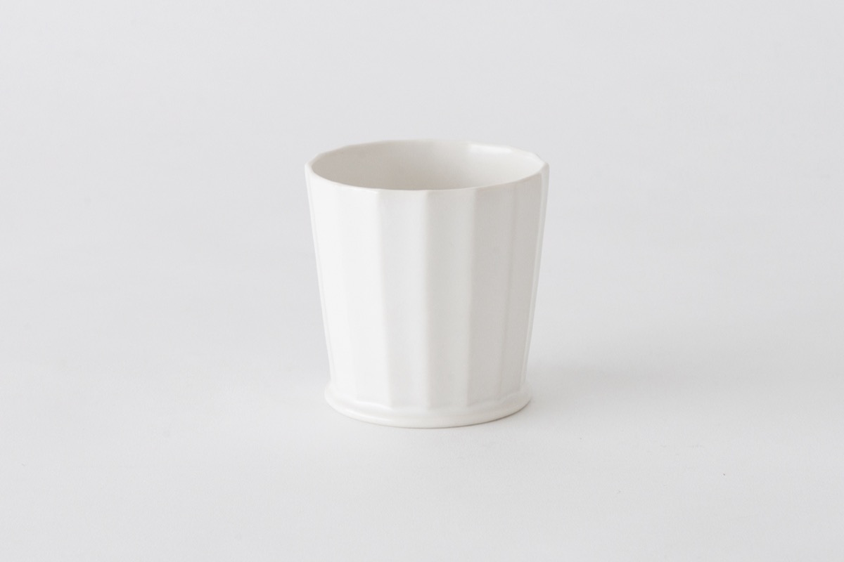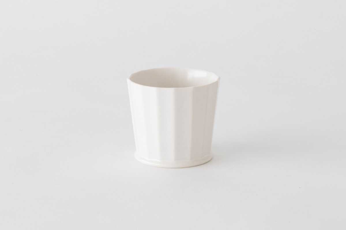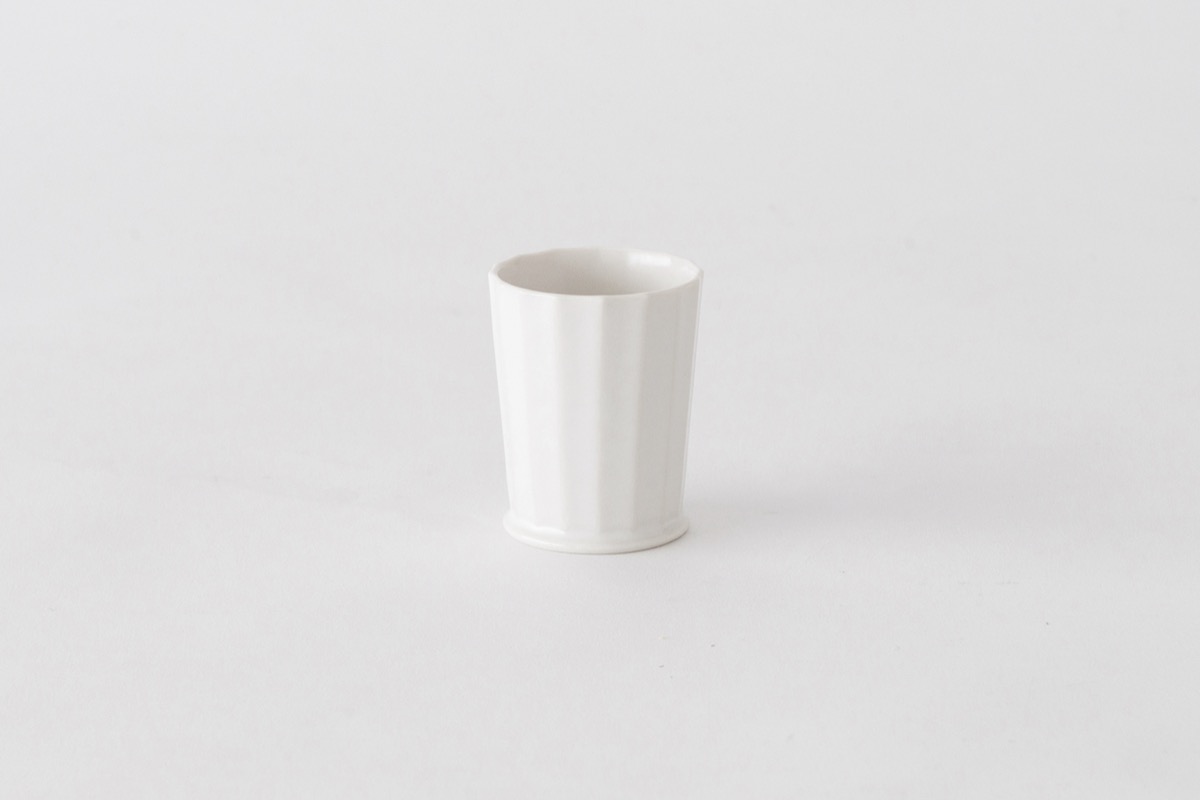 White porcelain facet cups designed by OJI Masanori.