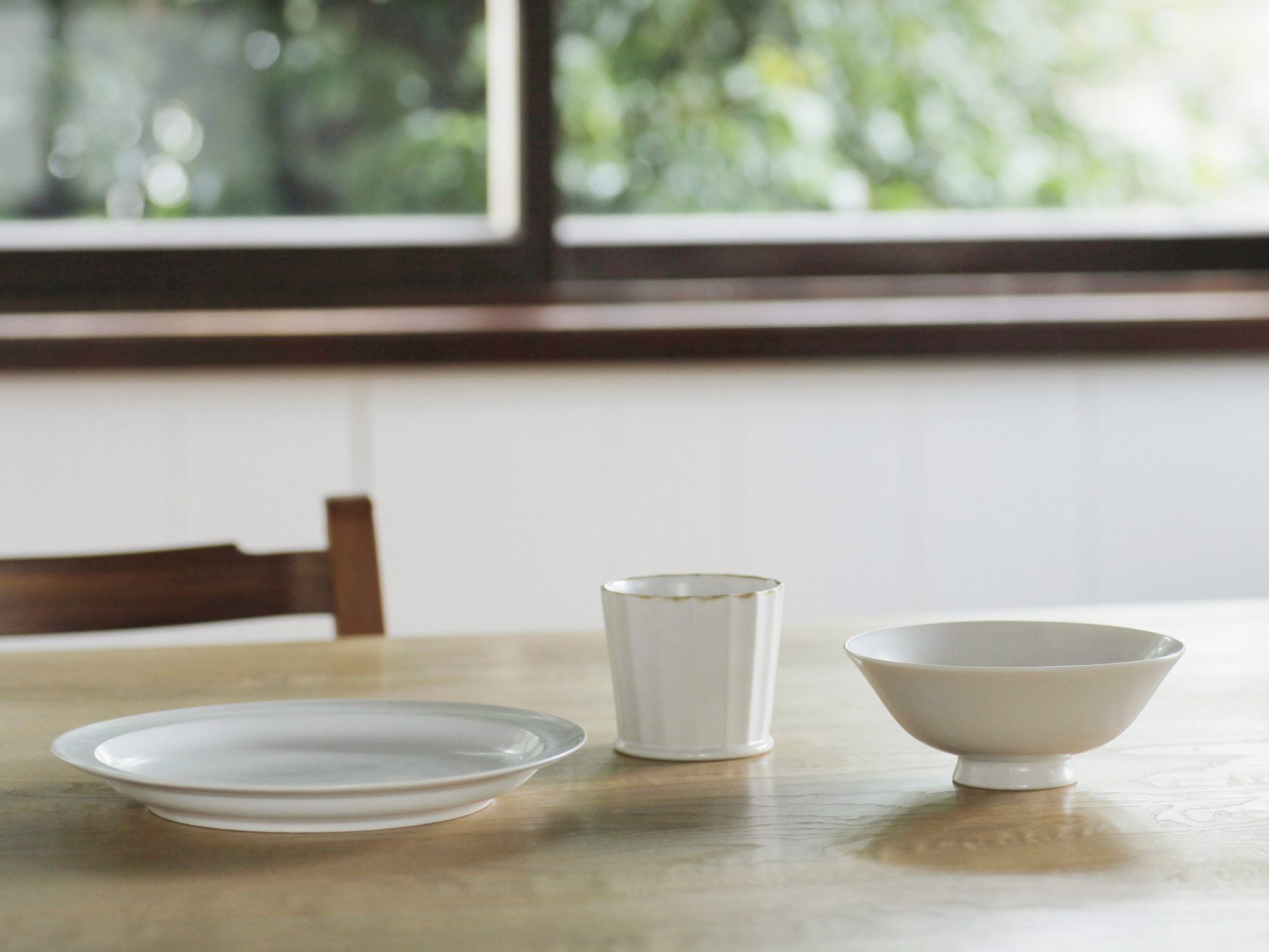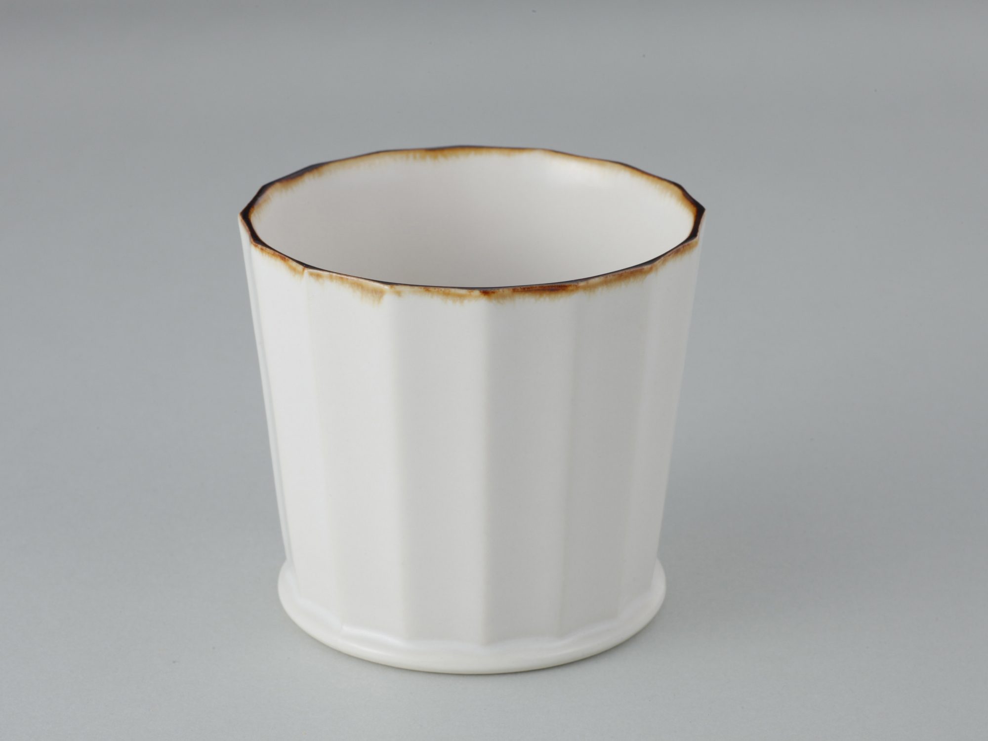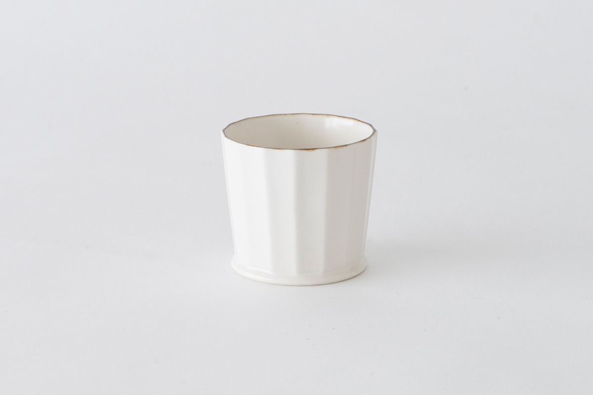 White porcelain facet cups designed by OJI Masanori.