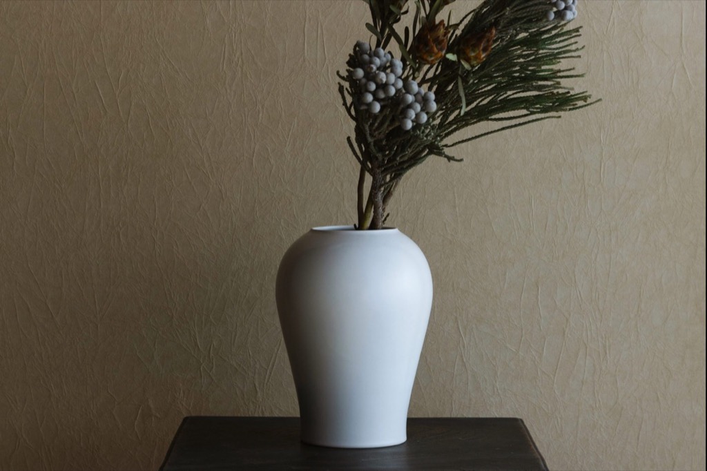 "A flower vase that you can visually imagine how you want to arrange flowers in relation to the surrounding atmosphere." Among other tableware products, including plates and dishes, JICON also creates flower vases that exude graceful beauty. The vases’ simple elegance enhances the overall beauty of the flowers.