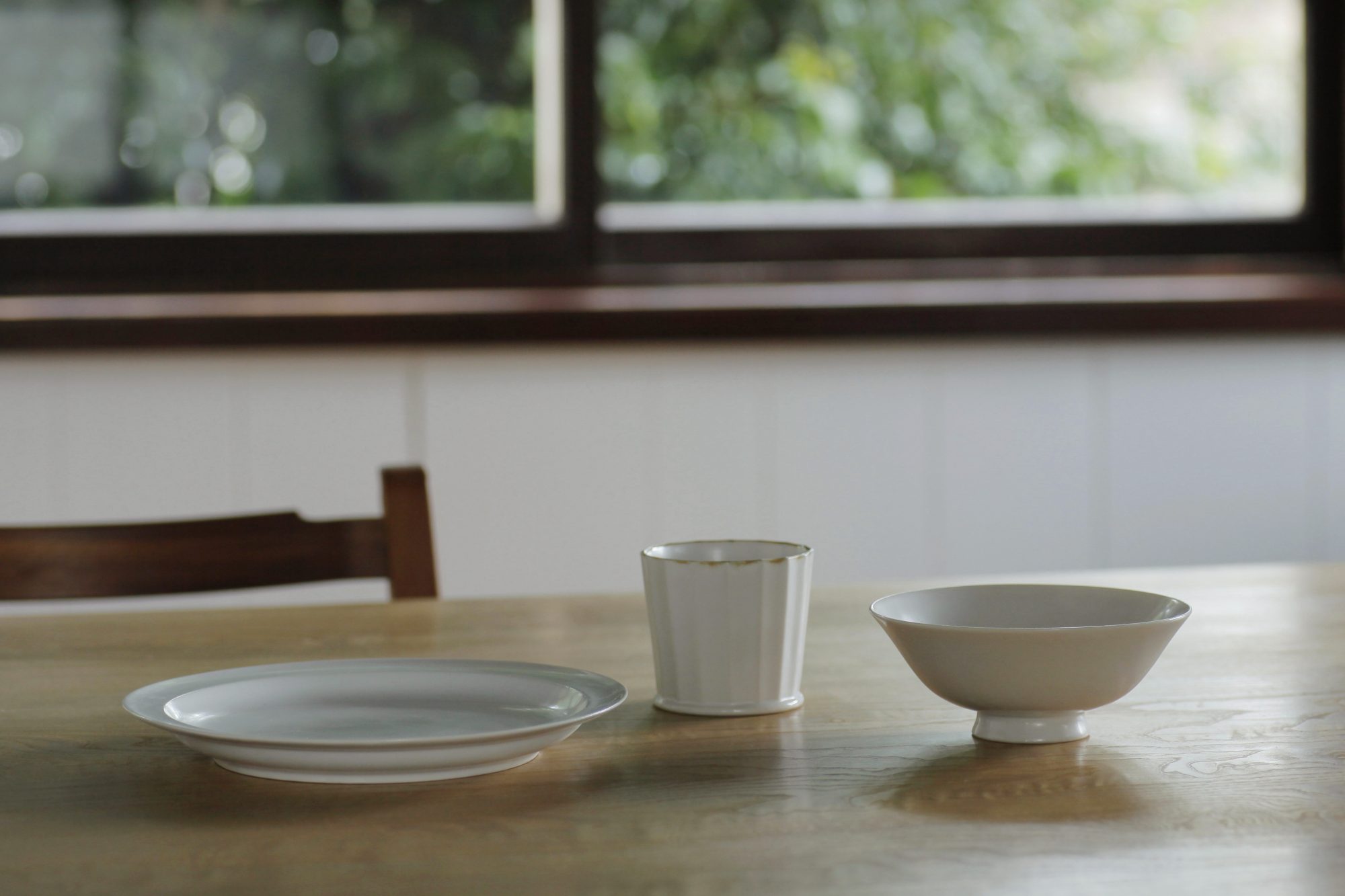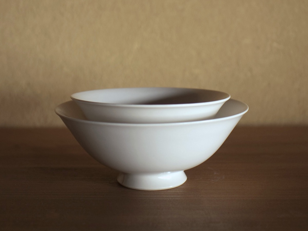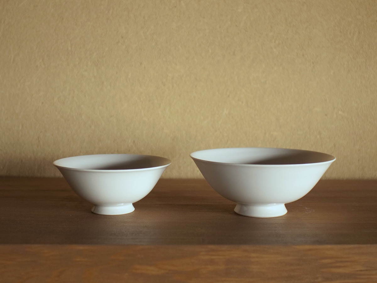 Beautifully curved, classic white porcelain rice bowls designed by OJI Masanori.