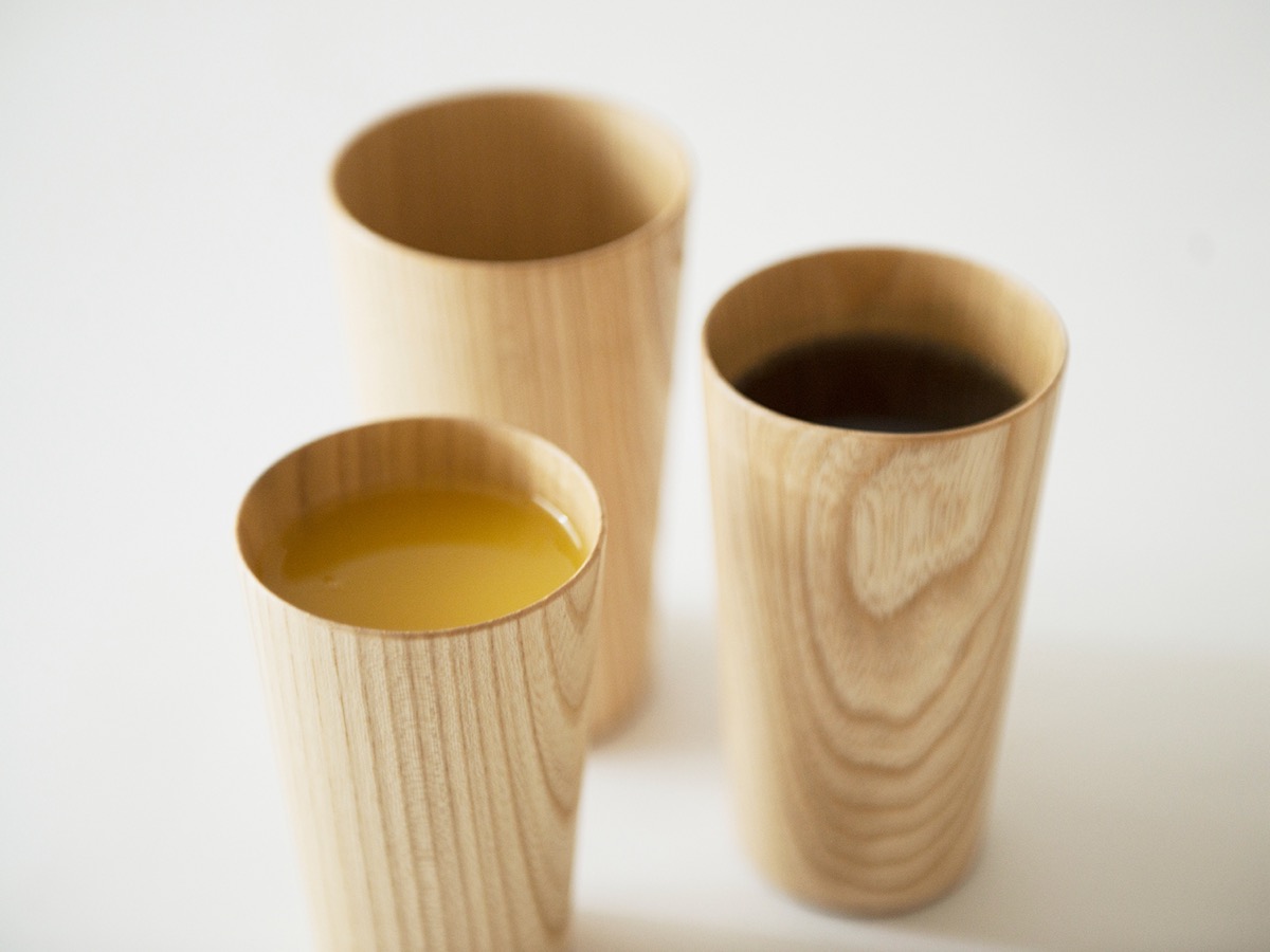 Wooden glasses made of Castor Aralia grown in Hokkaido. Shaped by hand using a potter's wheel, it is only a couple of millimeter-thick.