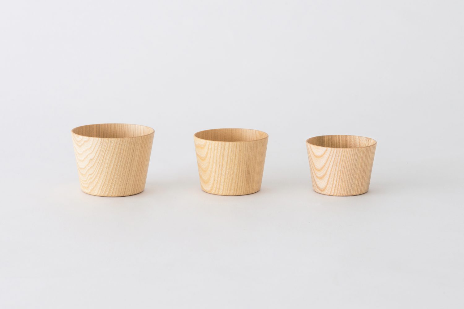 Wooden glasses made of Castor Aralia grown in Hokkaido. Shaped by hand using a lathe, it is only a couple of millimeter-thick.