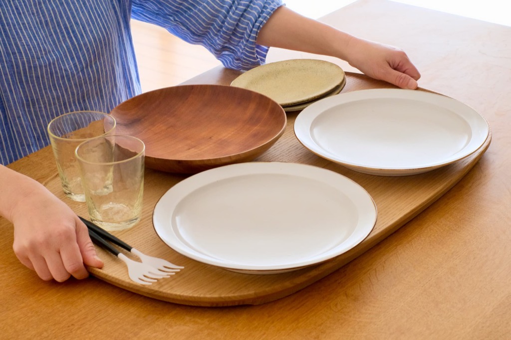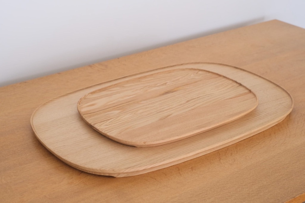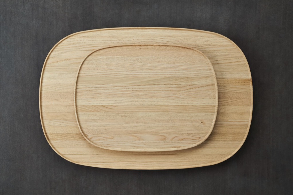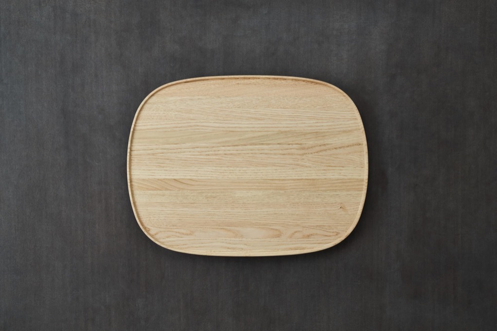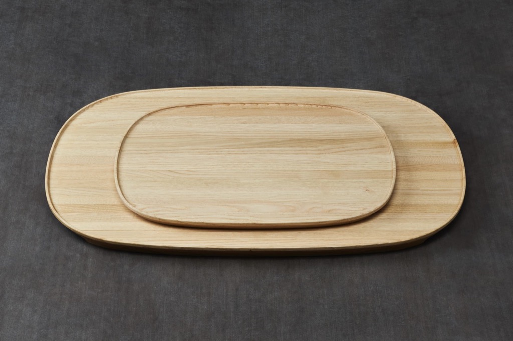 The FUKURA Tray for Two is as large as a small side table, comfortably holding a meal for two people. It can be used for breakfast in a hotel room or as a display tray for products in a store.