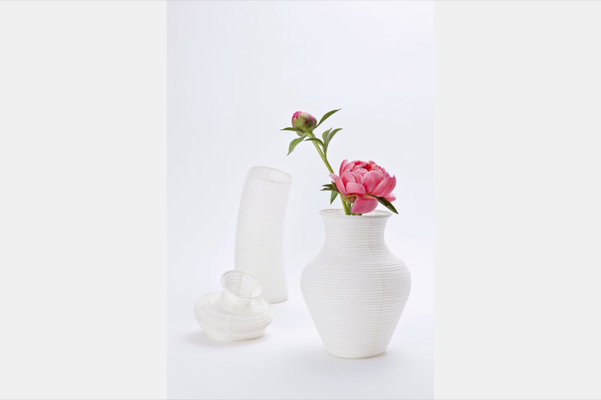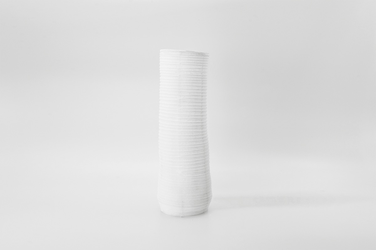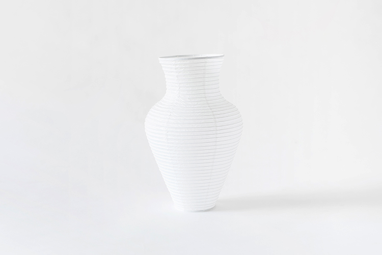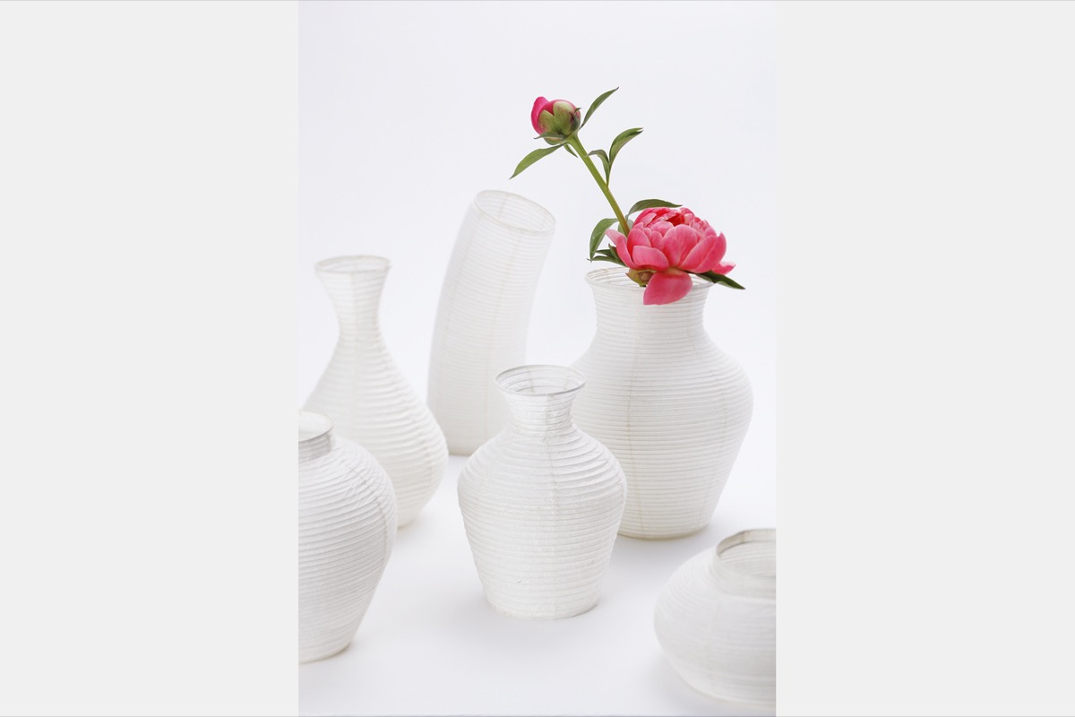 Spray water all over the expanded paper vase, and let it dry in a horizontal position. Use a minimum amount of water not to break the WASHI-paper. After dried, it helps keep the tension.