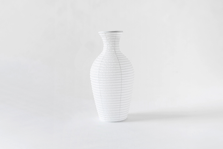 The Japanese WASHI-paper is made from mulberry bark fiber. As you pull it up and down, it extends like a Japanese paper lantern and instantly transforms into a paper vase cover. Put it over a plastic bottle or a glass holding cut flowers.