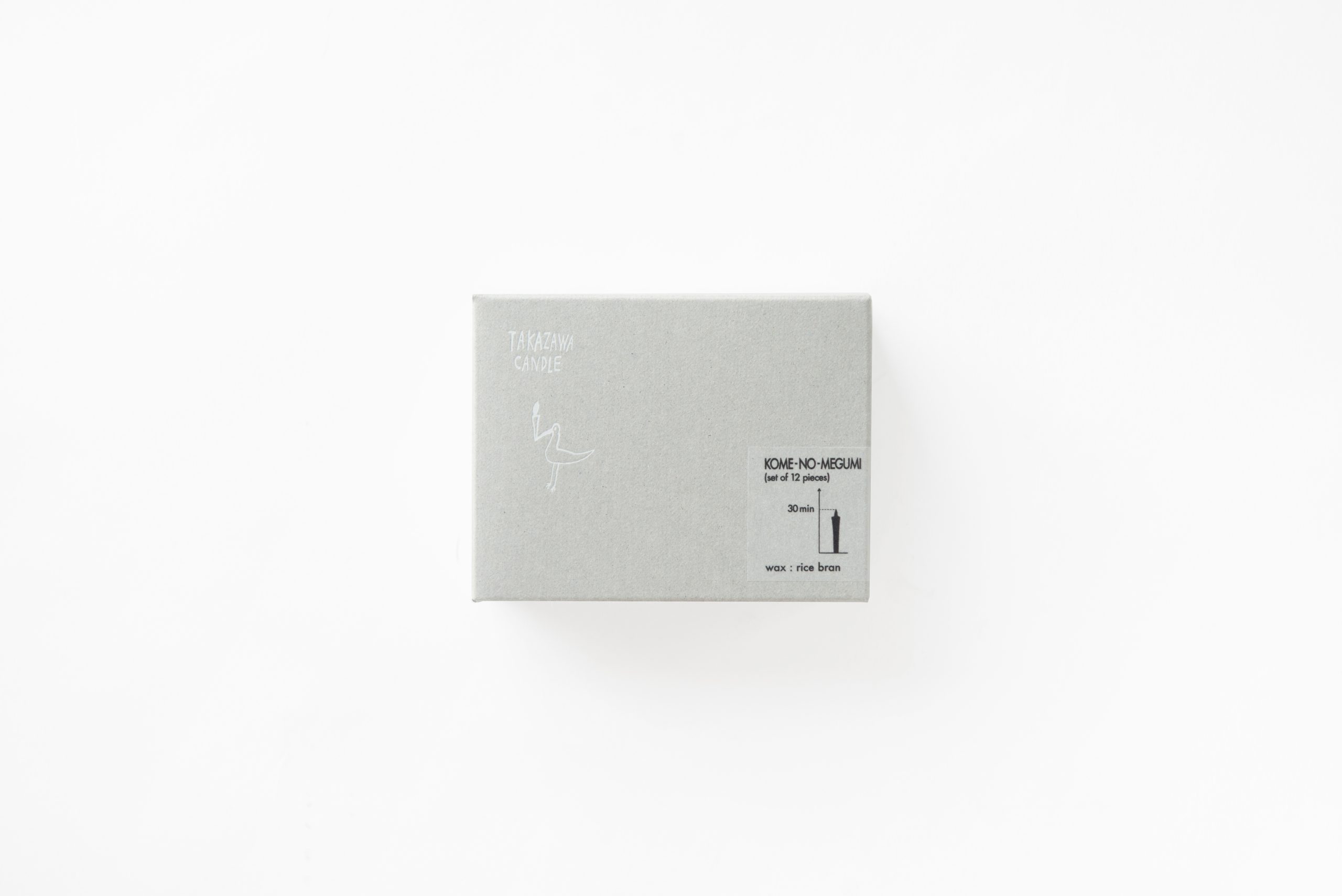 KOMKOME-NO-MEGUMI" means "the blessing of rice" in Japanese. Rice has been a staple food in Japan since ancient times. These candles are made with rice bran wax and burn out in just thirty minutes. The light can provide a relaxing moment to enjoy a cup of coffee or your favorite music, while also acting as a timer with a burning time of 30 min.