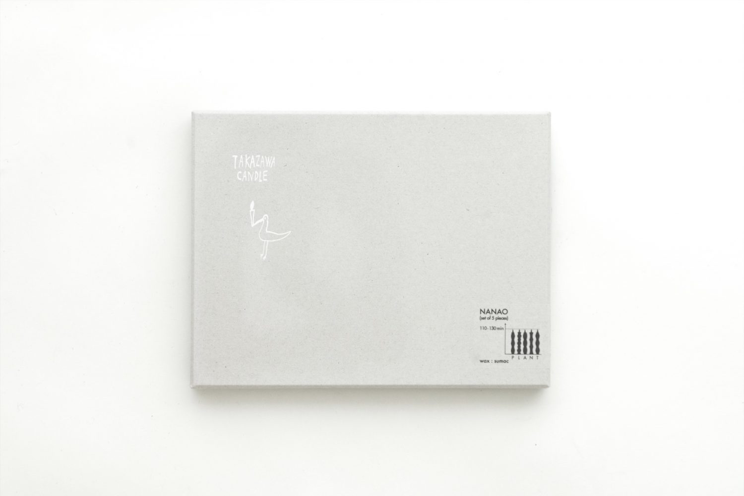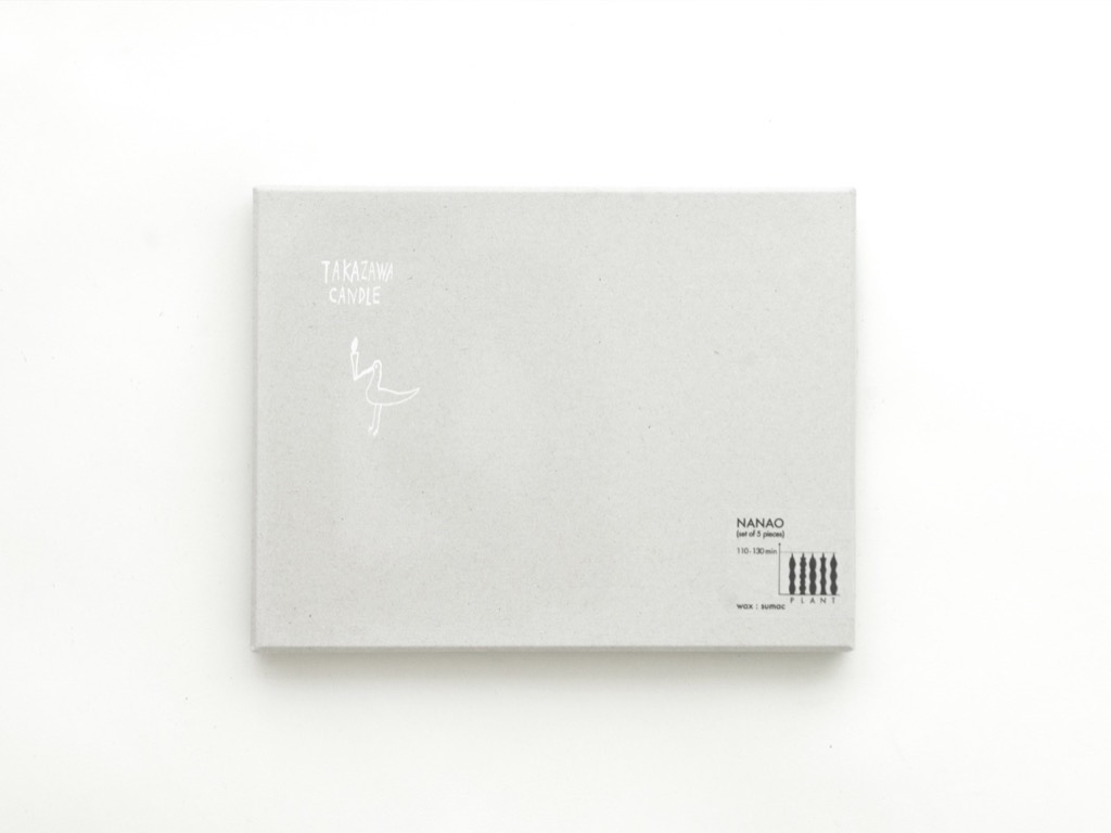 NANAO is the name of the city where TAKAZAWA CANDLE is located. It is in the heart of the glorious countryside, surrounded by the sea and mountains, making it easy to connect with nature. Five different candles are available, and each motifs a different plant that grows in the Noto Peninsula. Each candle is named after a letter of the word "plant.”