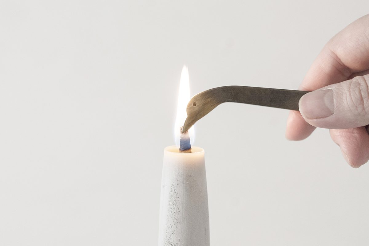 When using Japanese candles, you may occasionally cut the black burnt part of the wick down to adjust the size of the flame.  This cute-looking duck snuffer is specifically designed for this purpose.