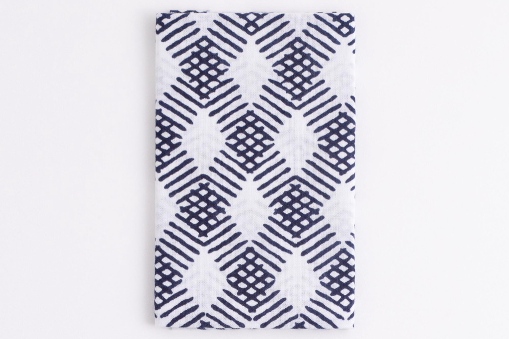TENUGUI is a hand-dyed rectangular cloth traditionally used in Japan for everyday functional housewares and garments. KOMON means "little patterns" in Japanese, and this is a collection of TENUGUI with KOMON patterns. Many KOMON patterns are traditional and have been enjoyed for over 100 years in Japan among commoners. Each pattern has its name and meaning. We also have KOMON patterns designed in recent years. Motifs are taken from everyday housewares, foods, etc., in modern Japan.